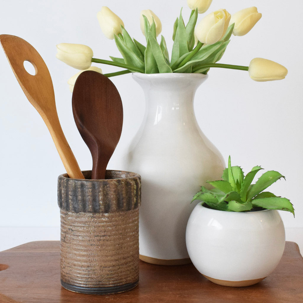 Peter's Pottery's rich earth tones of the Mississippi Delta are captured in the glazes and textures of this pottery, crafted with care by the Woods Brothers of Mound Bayou, MS.