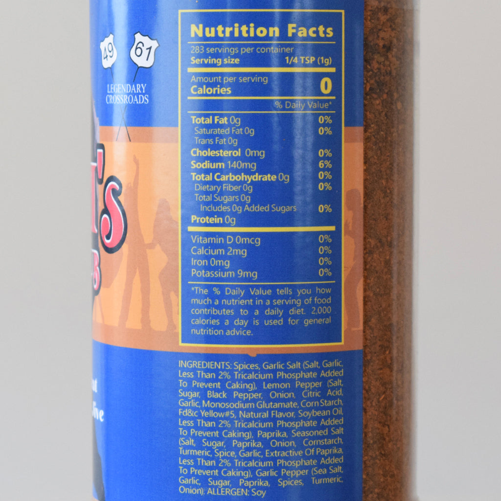 Ingredients: Spices, Garlic Salt, Lemon Pepper, Corn Starch, Natural Flavor, Soybean Oil, Sugar, Paprika, Turmeric, Onion.