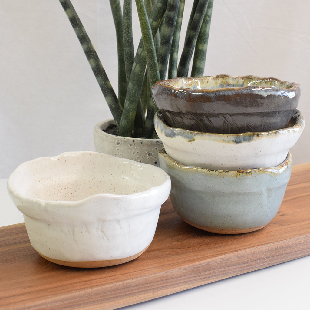 Each unique piece of Etta B Pottery is handcrafted and meticulously hand painted. The beautiful glazes provide a color palate sure to coordinate with any décor. The distressed and antique accents on these exquisite textures makes each piece a treasure. Though similar, no two pieces are just alike. This particular piece measures 6"x 3".