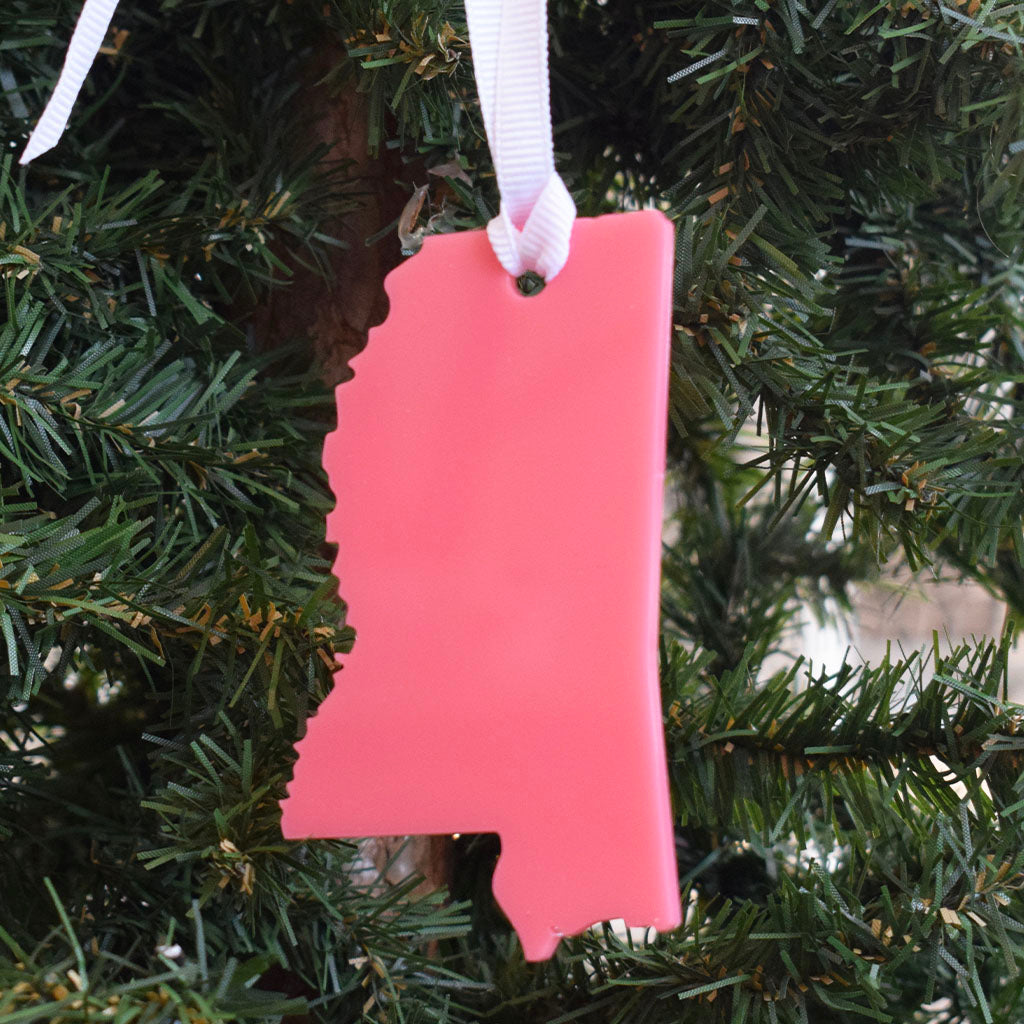 Add a touch of pride to your holiday decorations with our Mississippi Acrylic Ornament in Pink. Made from durable acrylic, it measures 3.5"x2" and is the perfect way to show off your love for Mississippi. Celebrate the season with a unique and stylish addition to your tree.