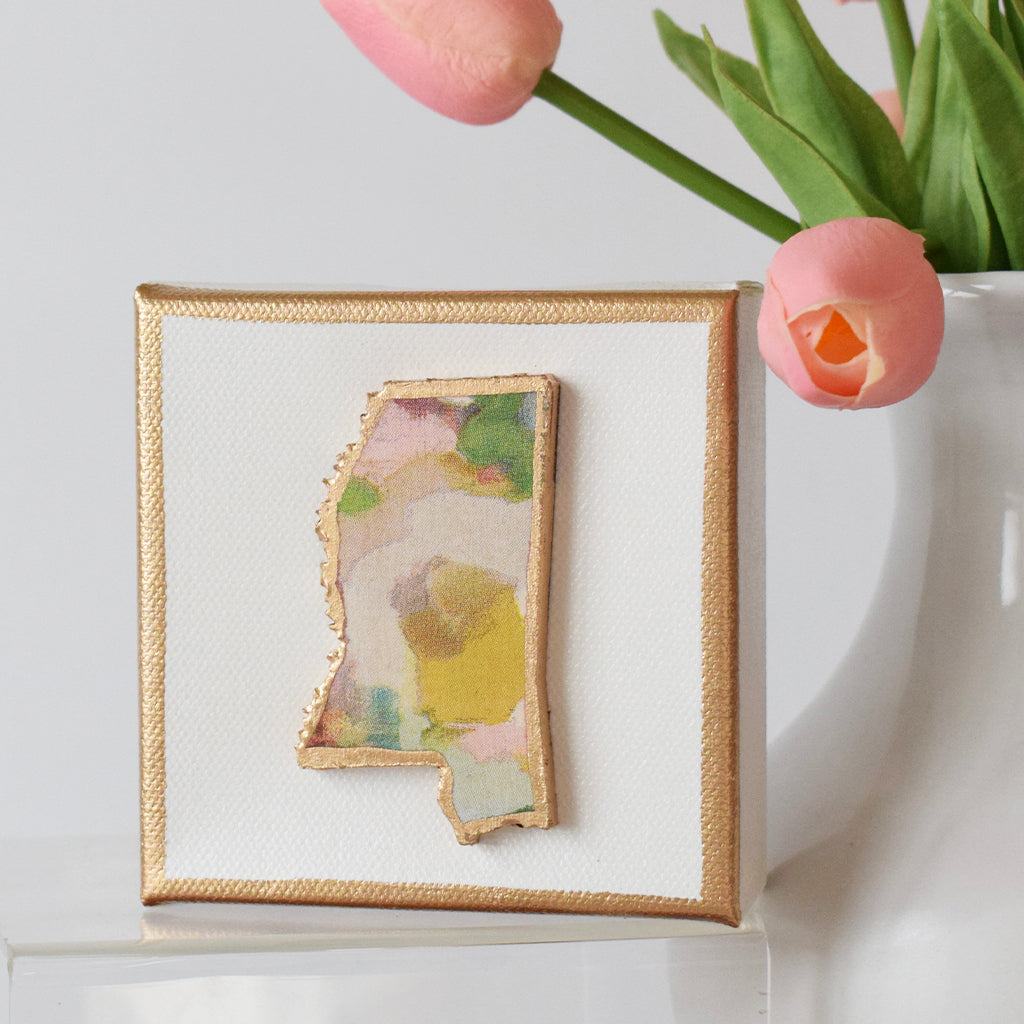 Jazz up your desk or shelf with this quirky soft colored Mississippi canvas! At a compact 4"x4", it's the perfect piece to add a touch of joy to any space.
