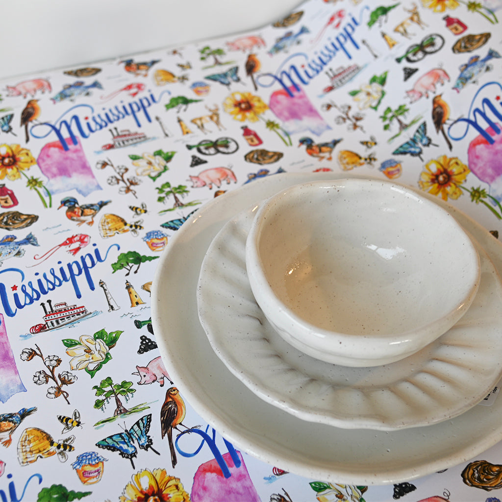 Elevate your tailgating with an exclusive and disposable paper table runner. Each uniquely designed paper runner featuring Mississippi icons can be cut to your desired length while adding a special touch to the center of your tablespace. Fill with florals, centerpieces, or foods to welcome all guests to the table, allowing you to entertain with ease. 20"x12'