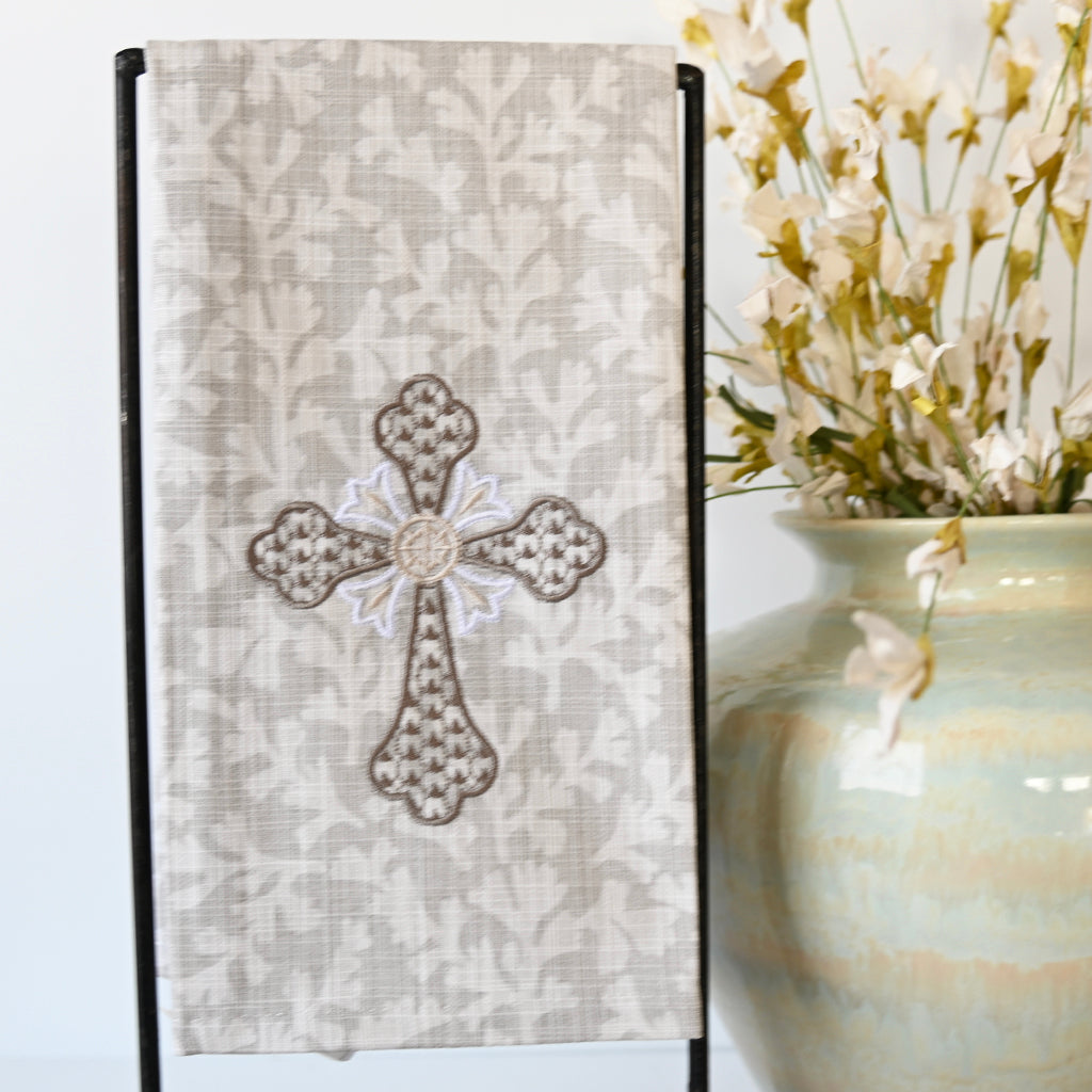 This hand towel features a neutral cross pattern, making it a versatile and stylish addition to any bathroom. Its absorbent material and soft texture provide comfort and convenience for everyday use. Add a touch of sophistication to your home with this expertly crafted hand towel.