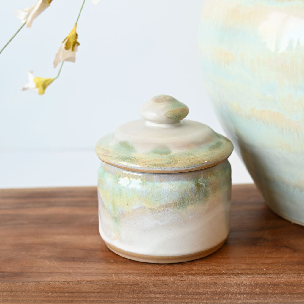 This beautiful sugar bowl exemplifies purposeful design for the dedicated tea or coffee enthusiast. Engineered with precision, it serves as a practical yet elegant component of your matcha preparation ensemble. The bowl's thoughtful capacity and refined construction facilitate seamless sugar dispensing during your morning ritual, while its sophisticated aesthetic complements both minimalist and traditional settings. A testament to quality craftsmanship, this vessel honors the meticulous nature of matcha culture and transforms a functional necessity into a distinguished addition to your tea service.