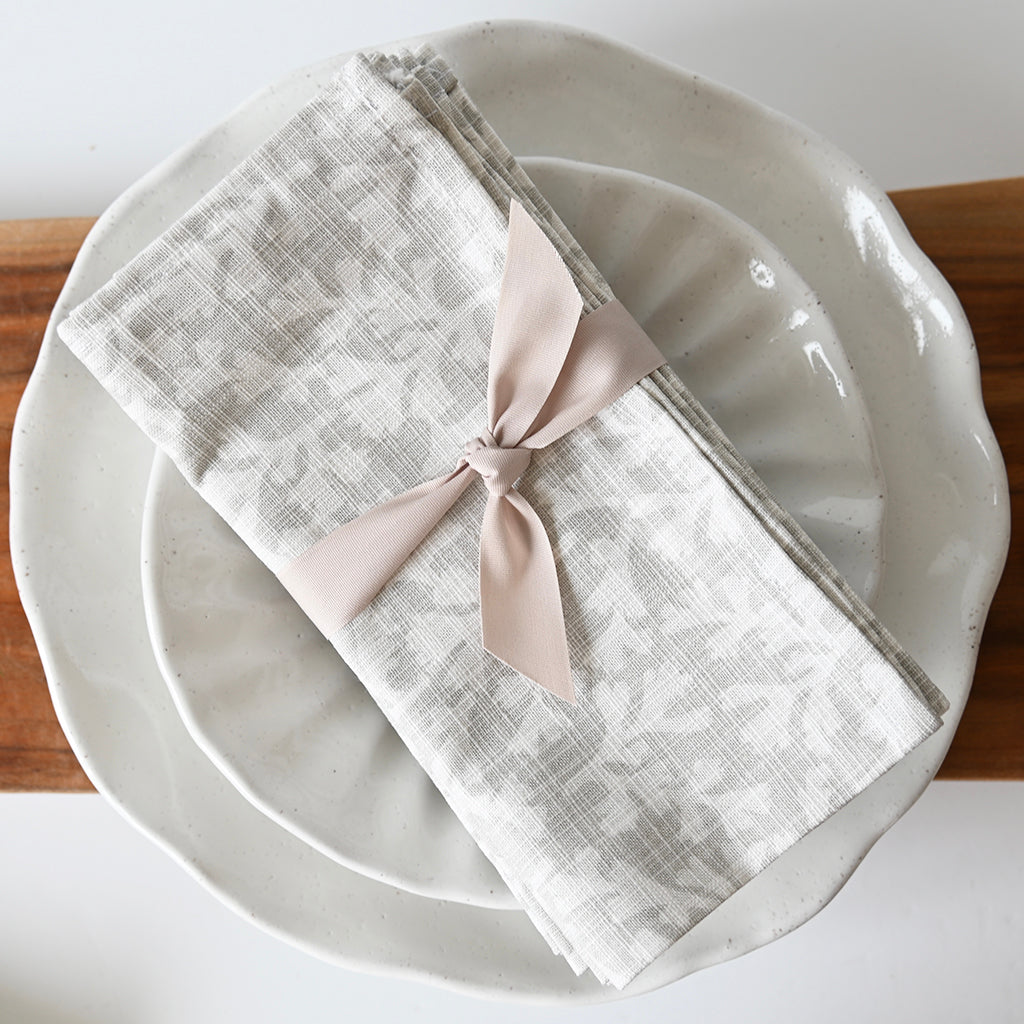Set the table with style with these beautiful dinner napkins! Crafted with 100% cotton, this set of 4 adds a timeless elegance to any dinner setting. Perfect for dinner parties and everyday dining, these napkins are sure to elevate your dining experience!