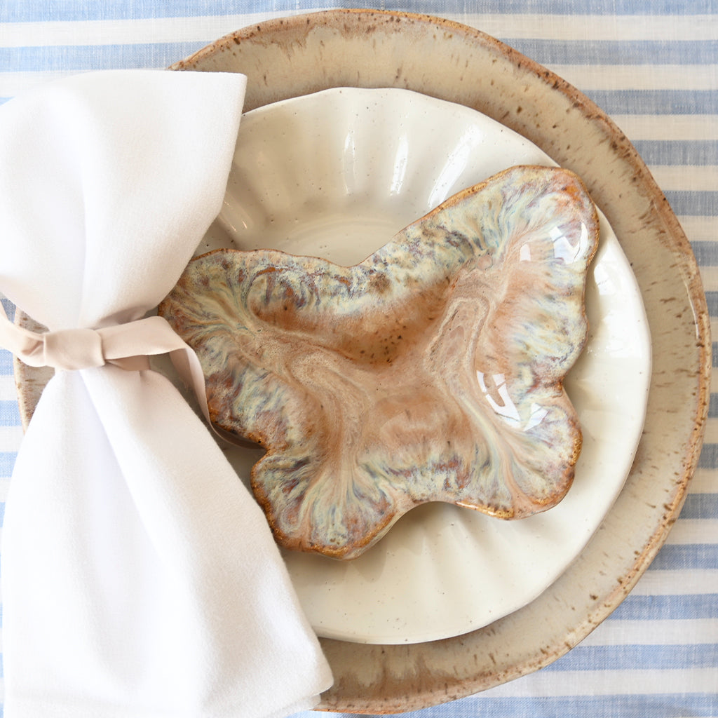 Each unique piece of Etta B Pottery is handcrafted and meticulously hand painted. The beautiful glazes provide a color palate sure to coordinate with any decor. The distressed and antique accents on these exquisite textures makes each piece a treasure. Though similar, no two pieces are just alike.