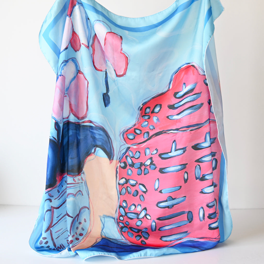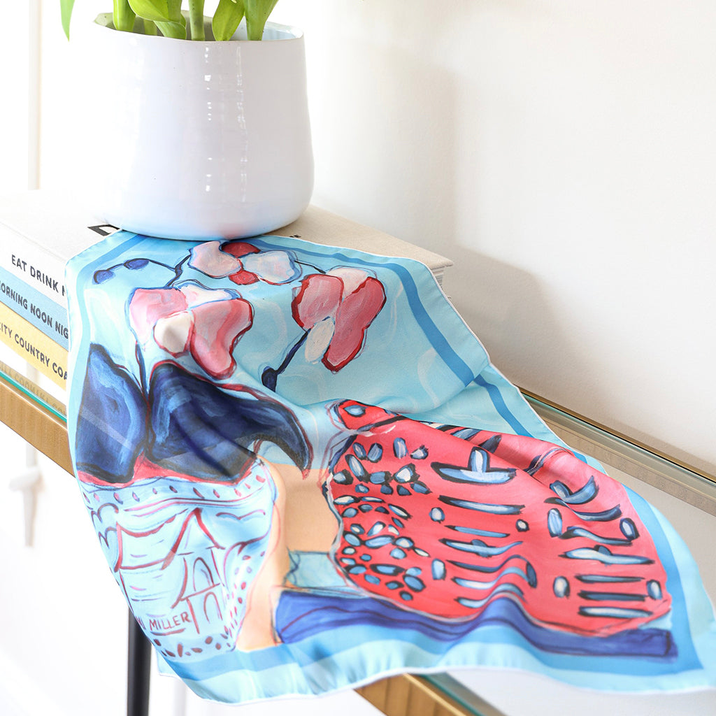 Show your Rebel pride with this stunning 26"x26" scarf featuring vibrant orchids in Ole Miss colors! Perfect for game days, this oversized accessory adds a playful pop of team spirit to any outfit. Wrap yourself in Rebel tradition with this beautifully designed floral statement piece.