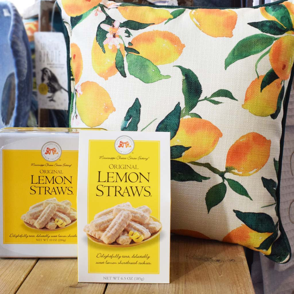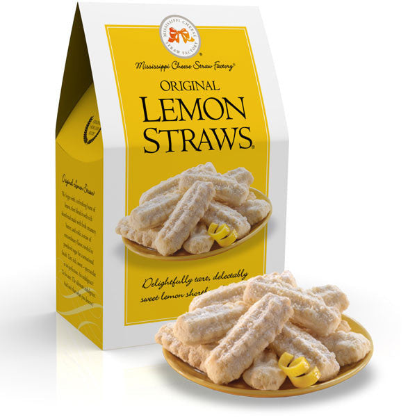 Original Lemon Straws are instantly refreshing, as deeply satisfying as ice cold, made from scratch lemonade in the middle of a Mississippi July. These tart lemon shortbread cookies are twirled in powdered sugar to make every bite sheer delight. Ahhhh... melt in your mouth buttery goodness with a delicate twist of lemon, topped with delectable sweetness. 6.5 oz.