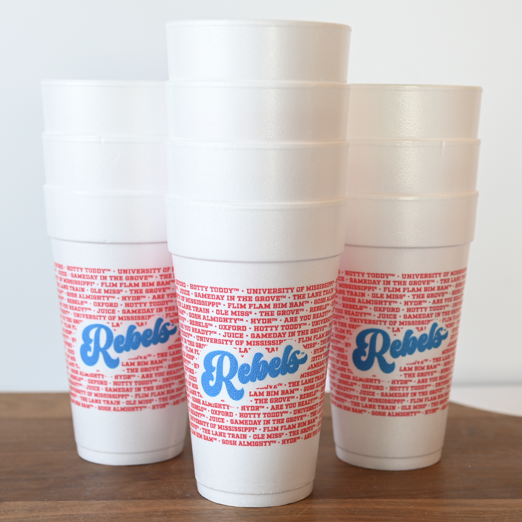 Elevate your tailgate or game day gathering with these Rebels Wrapped Foam Cups. Each sleeve contains 10 durable foam cups, each holding 20 oz of your favorite beverage, ensuring you stay refreshed throughout the event. Designed for convenience and portability, these cups are perfect for outdoor celebrations, sports events, or casual get-togethers. Their sturdy construction helps keep drinks at the ideal temperature while minimizing spills. Whether cheering on your team or enjoying time with friends, these foam cups enhance your experience with reliable performance and spirited style.