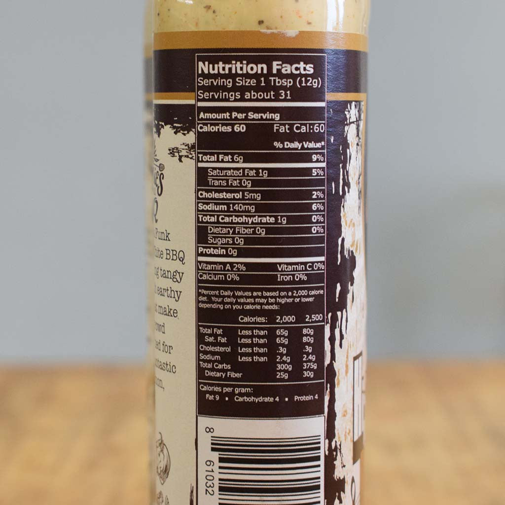 Ingredients: Mayonnaise, White Distilled Vinegar, Lemon Juice, Water, Mustard Powder, Kosher Salt, Pepper, Paprika, Cayenne Pepper.