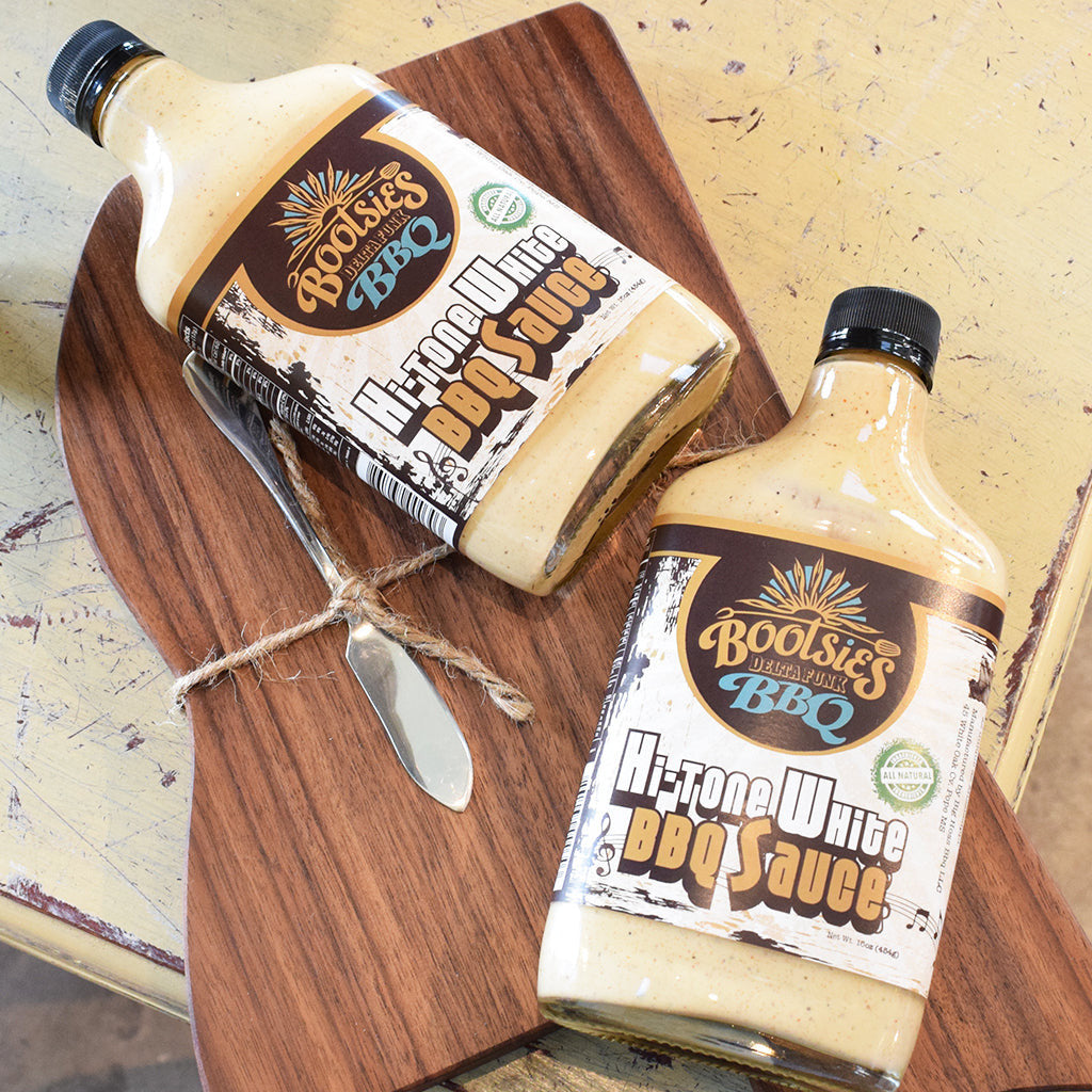 Bootsie's Delta Funk presents it's White BBQ Sauce. Featuring tangy high notes with earthy spice ones that make it an instant crowd pleaser. Designed for chicken, but fantastic on turkey, salmon, pork and beef. All natural- does not contain MSG or high fructose corn syrup. 16oz.