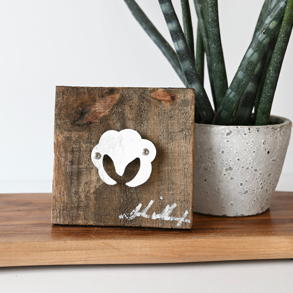 Greenwood native John Willcoxon is inspired by his love of old things and repurposes them into new beautiful works of art. Each handmade piece is unique and one of a kind. This piece measures 9"x3.5" and comes ready to hang.