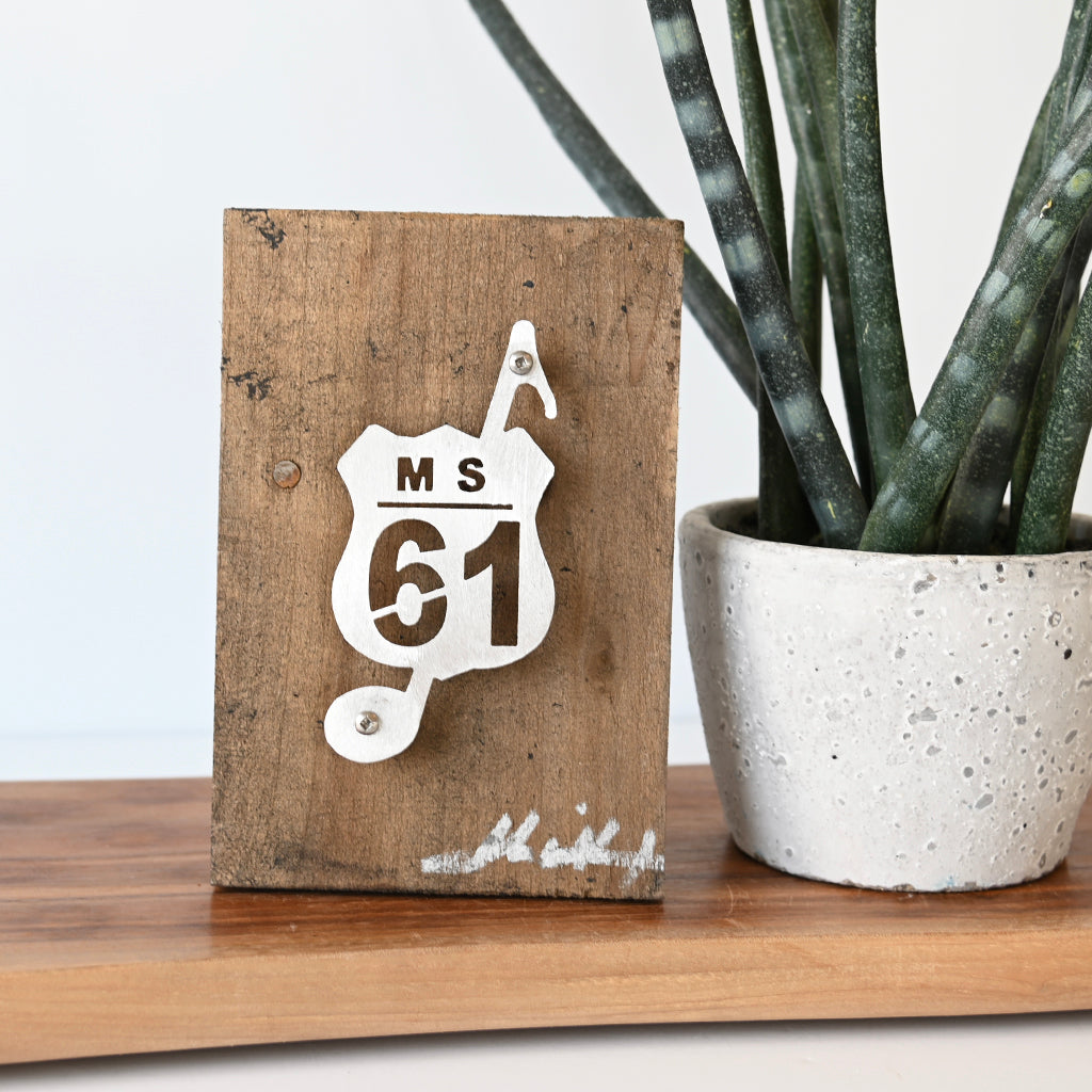Greenwood native John Willcoxon is inspired by his love of old things and repurposes them into new beautiful works of art. Each handmade piece is unique and one of a kind. This piece measures 9"x3.5" and comes ready to hang.