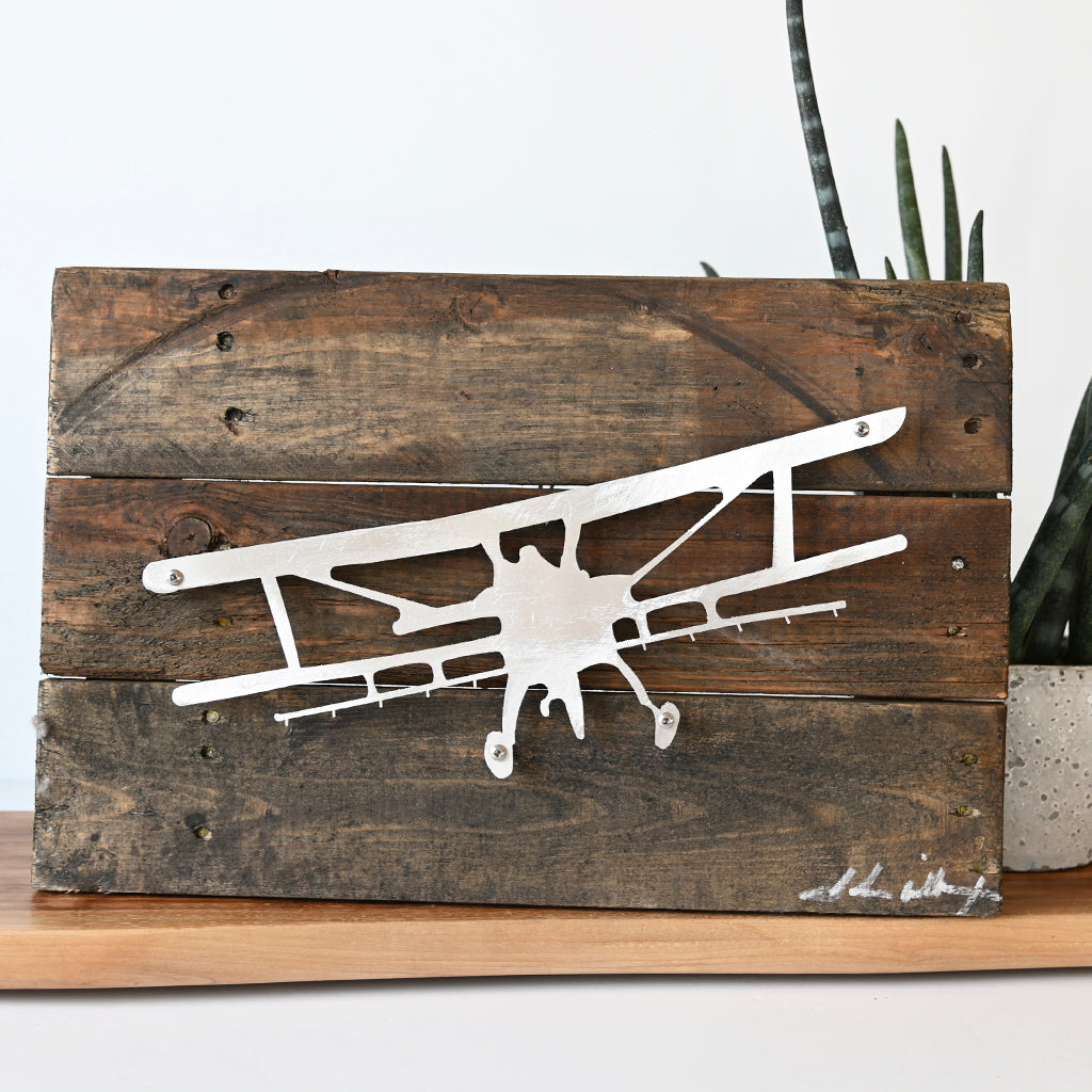 Greenwood native John Willcoxon is inspired by his love of old things and repurposes them into new beautiful works of art. Each handmade piece is unique and one of a kind. This piece measures 16"x10" and comes ready to hang.