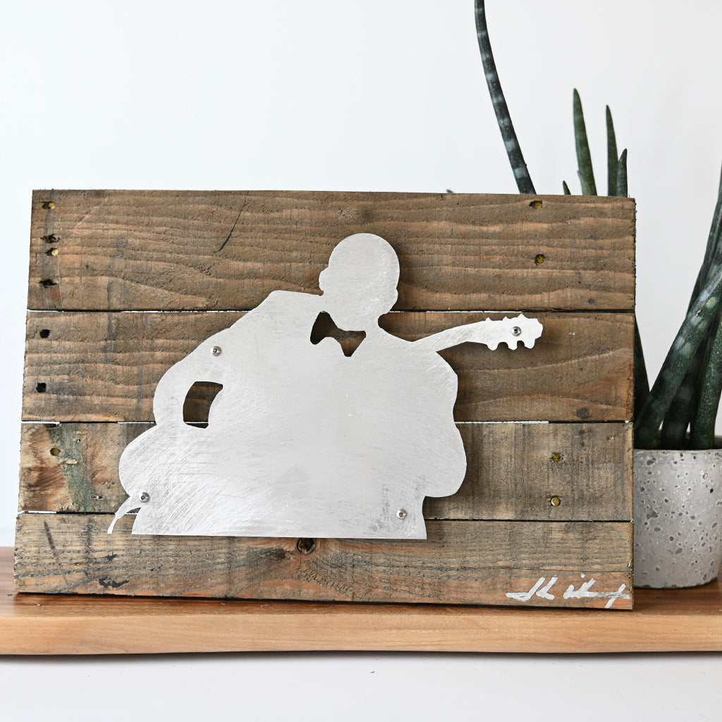 Greenwood native John Willcoxon is inspired by his love of old things and repurposes them into new beautiful works of art. Each handmade piece is unique and one of a kind. This piece measures 16"x10" and comes ready to hang.