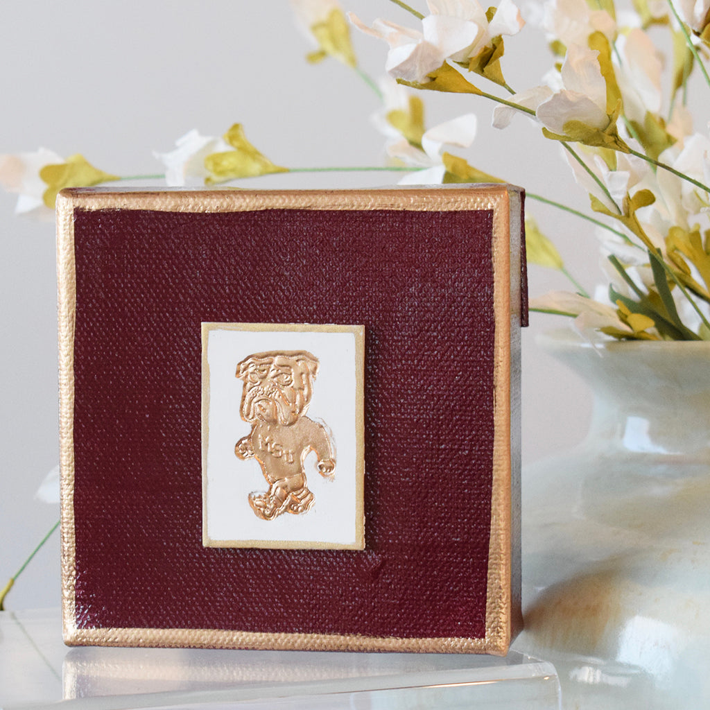 Enhance your desk or shelf with this stunning hand-painted bulldog. Measuring 4"x4", it's the perfect addition to any room and is sure to delight all who see it. This unique piece of art is a must-have for any collector or bulldog lover.