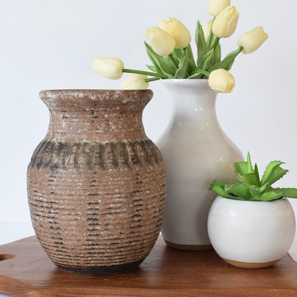 This 8" vase offers a refined design that complements diverse décor styles. Its size makes it ideal for displaying small to medium flower arrangements, adding warmth and understated elegance to any space. Crafted with attention to detail, this vase brings both functionality and a tasteful accent to your home or office environment.
