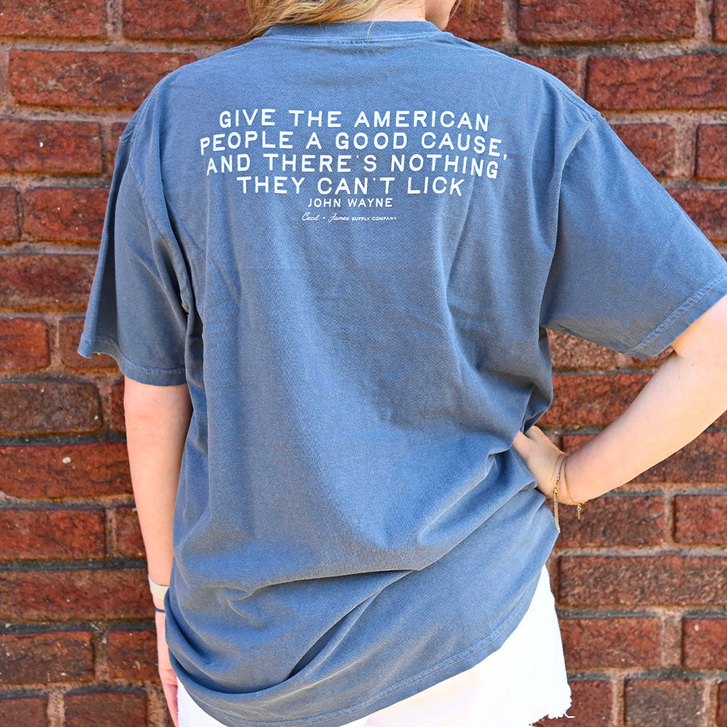 Inspire the American spirit with the A Good Cause Tee. Featuring a powerful quote from the iconic John Wayne, this tee represents the unwavering determination and strength of the American people.