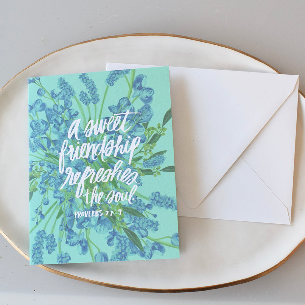 A greeting card is the perfect way to let someone know you're thinking of them. Whether a thank you, or birthday, or just a thinking of you, these cards will show them how much you care. Individual card on quality card stock and pretty enough to frame! This card features a simple and sweet illustration, to communicate your friendship with thoughtfulness and care. It's the perfect keepsake that will last for years to come.