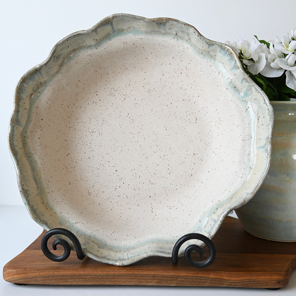 Each unique piece of Etta B Pottery is handcrafted and meticulously hand painted. The beautiful glazes provide a color palate sure to coordinate with any décor. The distressed and antique accents on these exquisite textures makes each piece a treasure. Though similar, no two pieces are just alike.