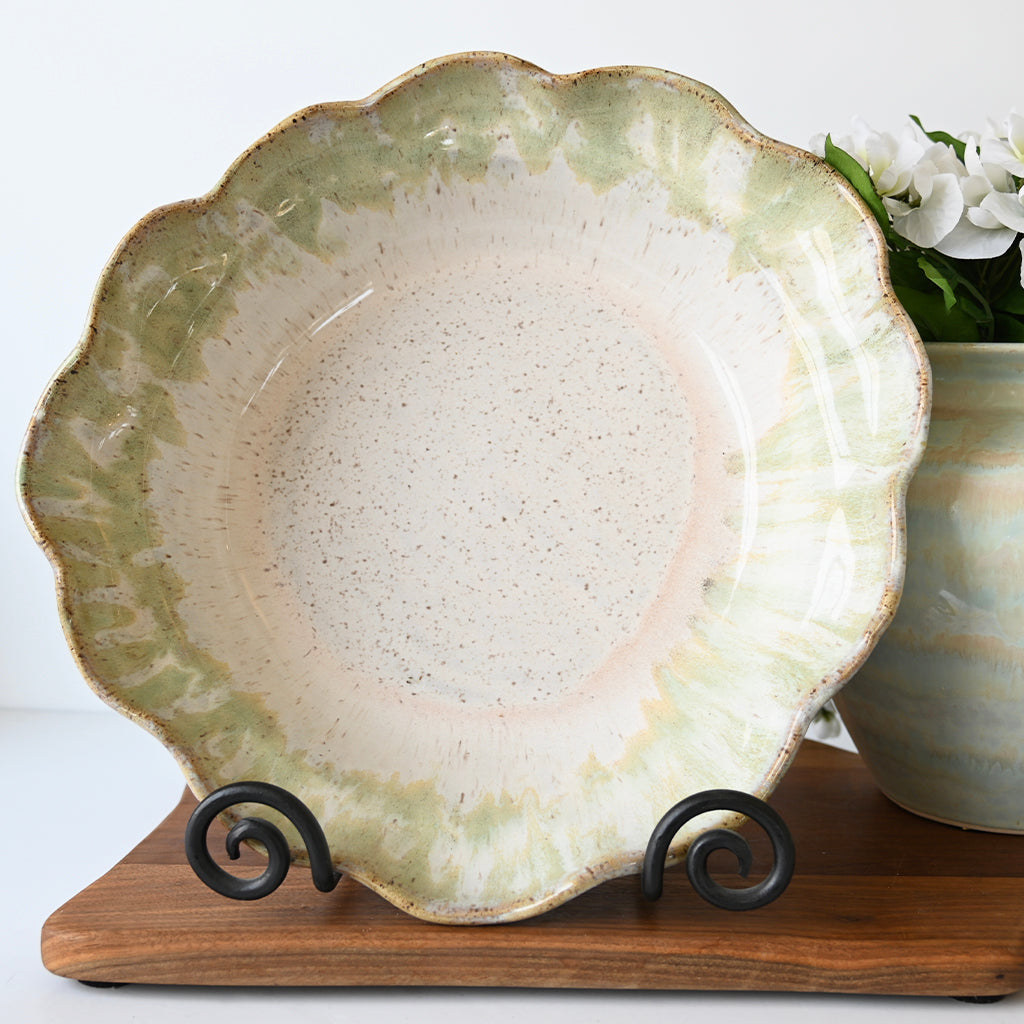 Each unique piece of Etta B Pottery is handcrafted and meticulously hand painted. The beautiful glazes provide a color palate sure to coordinate with any décor. The distressed and antique accents on these exquisite textures makes each piece a treasure. Though similar, no two pieces are just alike.