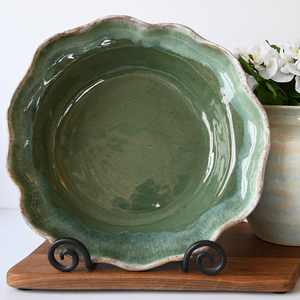 Each unique piece of Etta B Pottery is handcrafted and meticulously hand painted. The beautiful glazes provide a color palate sure to coordinate with any décor. The distressed and antique accents on these exquisite textures makes each piece a treasure. Though similar, no two pieces are just alike.
