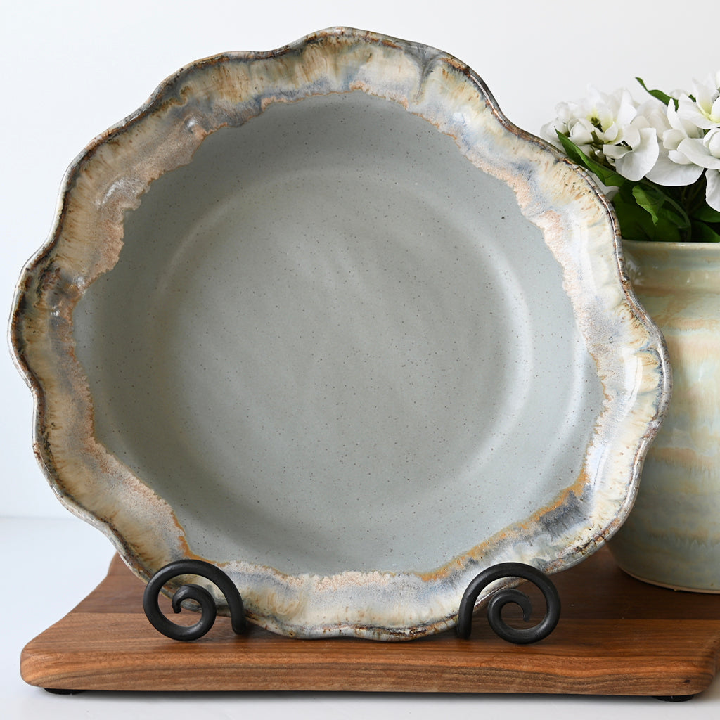 Each unique piece of Etta B Pottery is handcrafted and meticulously hand painted. The beautiful glazes provide a color palate sure to coordinate with any décor. The distressed and antique accents on these exquisite textures makes each piece a treasure. Though similar, no two pieces are just alike.