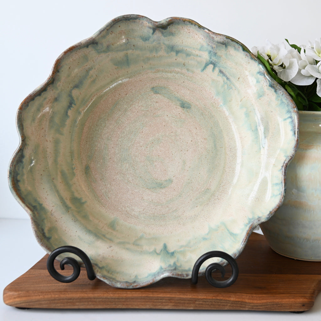 Each unique piece of Etta B Pottery is handcrafted and meticulously hand painted. The beautiful glazes provide a color palate sure to coordinate with any décor. The distressed and antique accents on these exquisite textures makes each piece a treasure. Though similar, no two pieces are just alike.