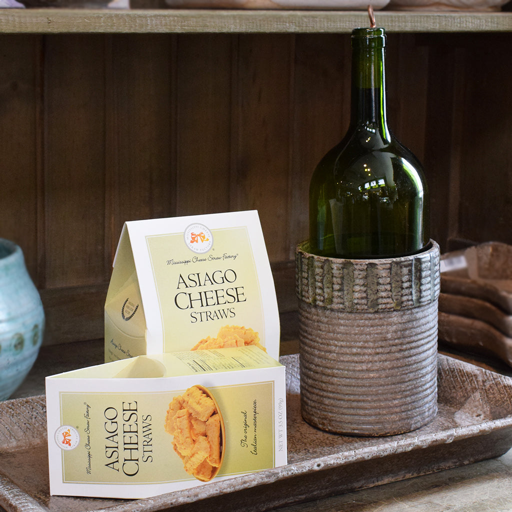 From the Mississippi Cheese Straw Factory come these delicious Asiago cheese straws. You know that aromatic flavor, the bravura taste and texture of this Italian cheese masterpiece. What you may not know- yet- is the depth of rich flavor and height of delectability Asiago can reach when it is perfectly aged and baked into a savory straw of uncommon quality. Great for parties or just a snack! 3.5 oz.