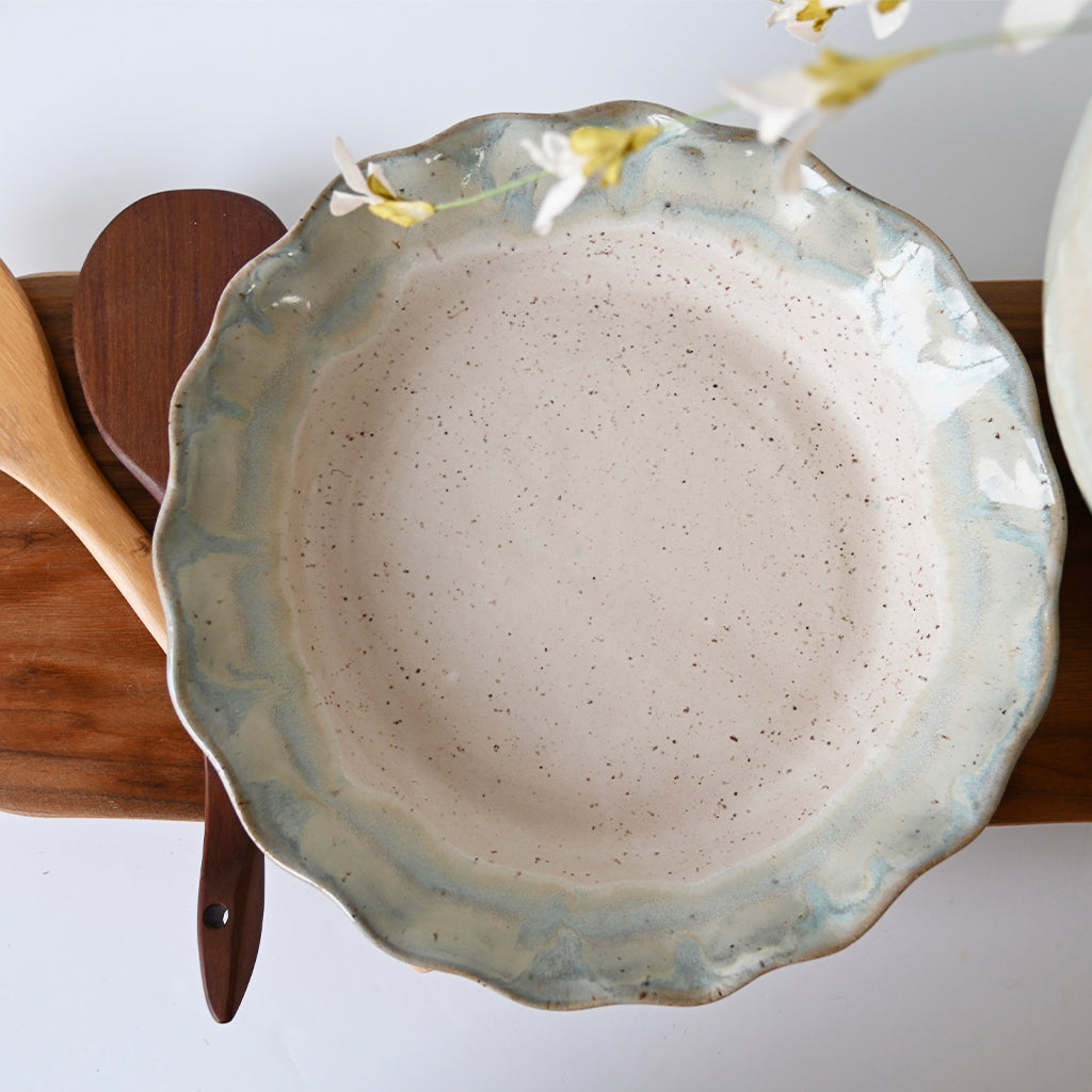 Upgrade your pie game with our Bakery Pie Dish in the Hydrangea glaze. Its stunning design makes serving your delicious pies a breeze. This dish is both beautiful and functional, making it the perfect addition to your kitchen. Impress your guests with every slice.