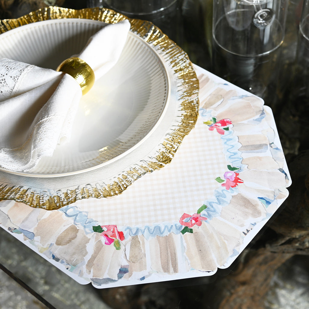 Create a unique tabletop with these Blue and Linen Paper Placemats. Perfect for any meal, this set of 10 die cut placemats adds a touch of charm to your table. Measuring 17"x 13", these placemats are both practical and stylish.