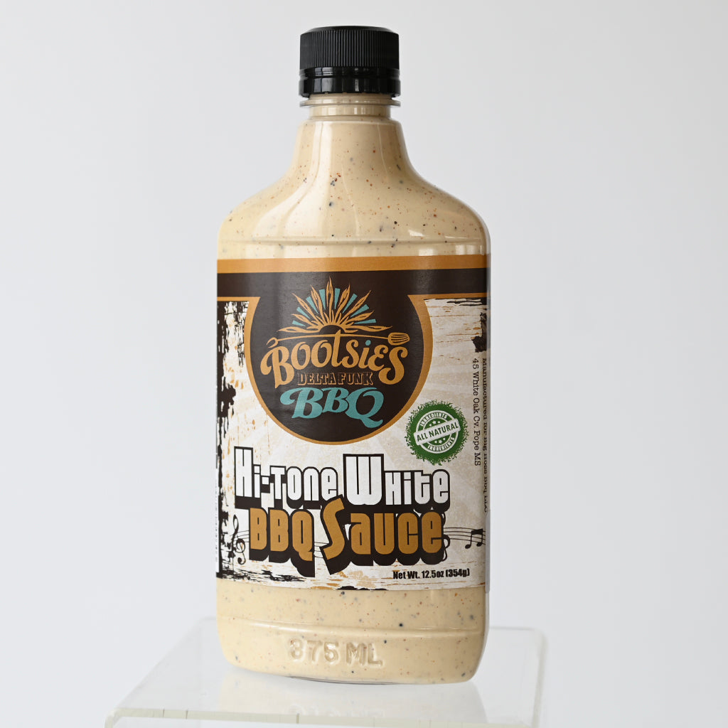 Bootsie's Delta Funk presents it's White BBQ Sauce. Featuring tangy high notes with earthy spice ones that make it an instant crowd pleaser. Designed for chicken, but fantastic on turkey, salmon, pork and beef. All natural- does not contain MSG or high fructose corn syrup. 16oz.