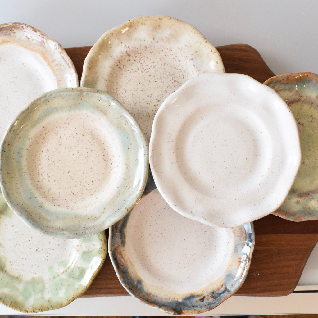 This Bread Plate is an elegant addition to any table setting. Crafted from clay with a durable Dogwood glaze, it is a neutral, timeless piece from Etta B Pottery. The plate measures 6.5" in diameter, perfect for a variety of snacks and dishes. It's a unique and beautiful way to show off your culinary creations. The glaze finish is designed to be chip-resistant for lasting quality.