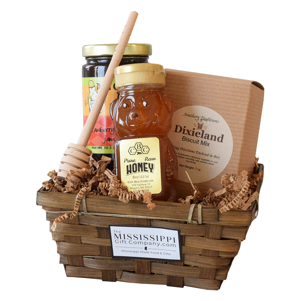 The Breakfast To Go Basket is the perfect way to enjoy and share a taste of Mississippi. Each item in the basket is made with locally-sourced ingredients to ensure the highest quality. Send someone a little Southern breakfast from items made in Mississippi! Basket includes: