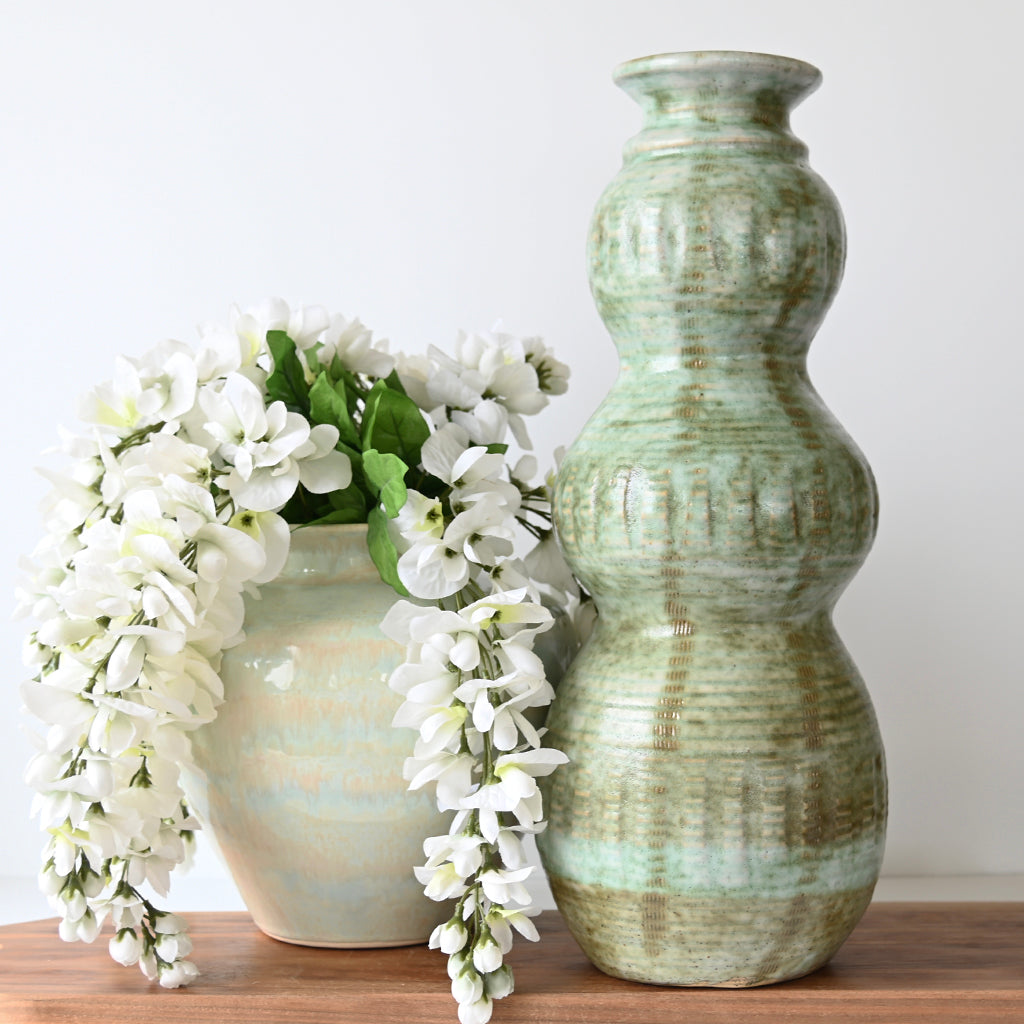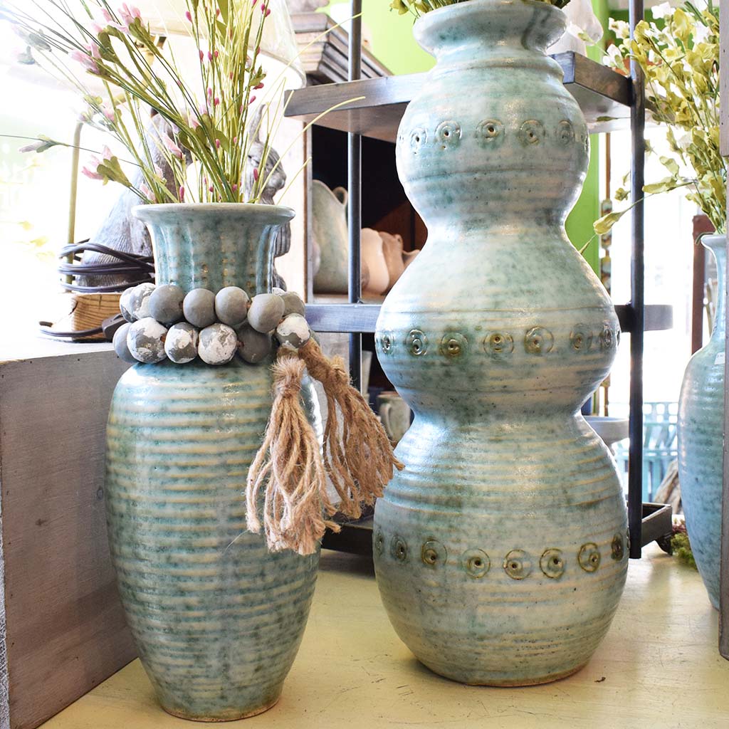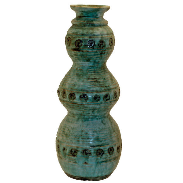 The rich earth tones of the Mississippi Delta are captured in the glazes and textures of this pottery, crafted with care by the Woods Brothers of Mound Bayou, MS. This piece measures 22" tall.