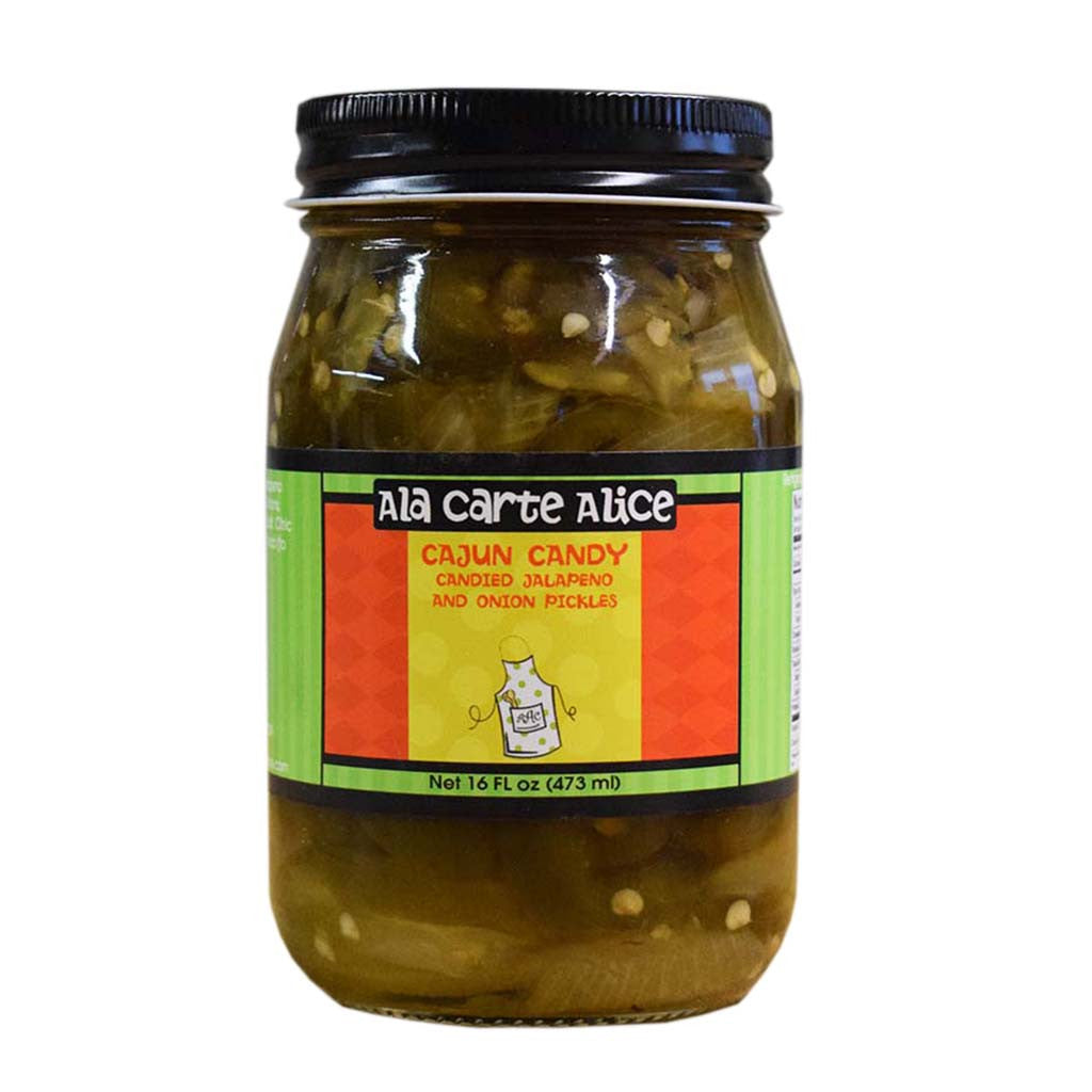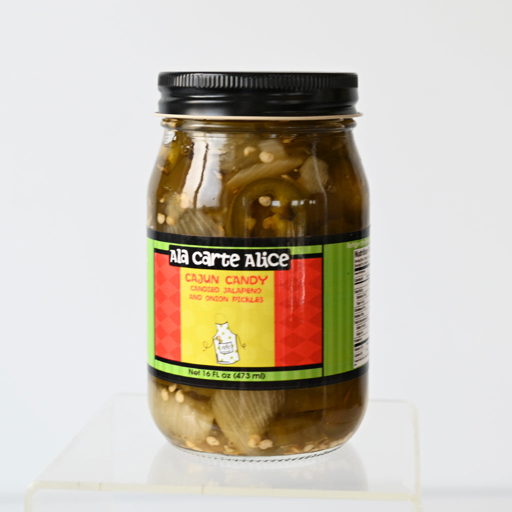 An addictive, sweet, hot and sour snack! Cajun Candy contains candied jalapeños and onions with a hint of vinegar. Enjoy by itself, spice up your favorite sandwich, or add it to your beloved charcuterie board.