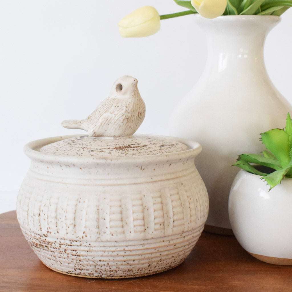 in the glazes and textures of this pottery, crafted with care by the Woods