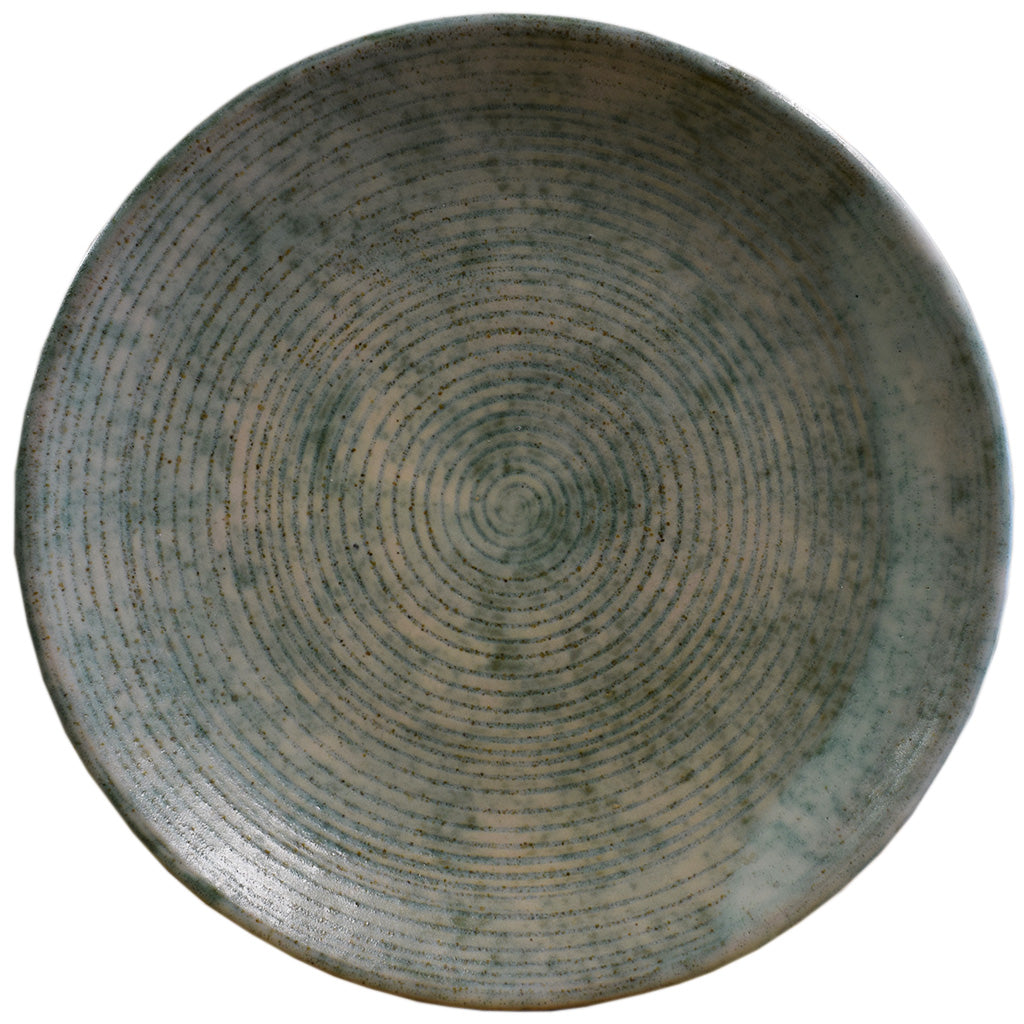The rich earth tones of the Mississippi Delta are captured in the glazes and textures of this pottery, crafted with care by the Woods Brothers of Mound Bayou, MS. This piece measures 16 inches in diameter.
