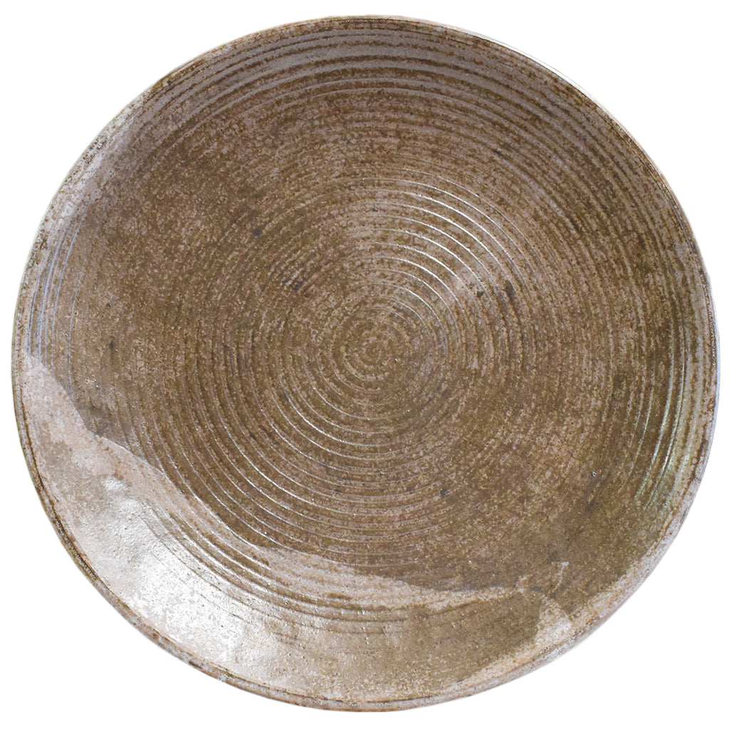 The rich earth tones of the Mississippi Delta are captured in the glazes and textures of this pottery, crafted with care by the Woods Brothers of Mound Bayou, MS. This piece measures 16 inches in diameter.