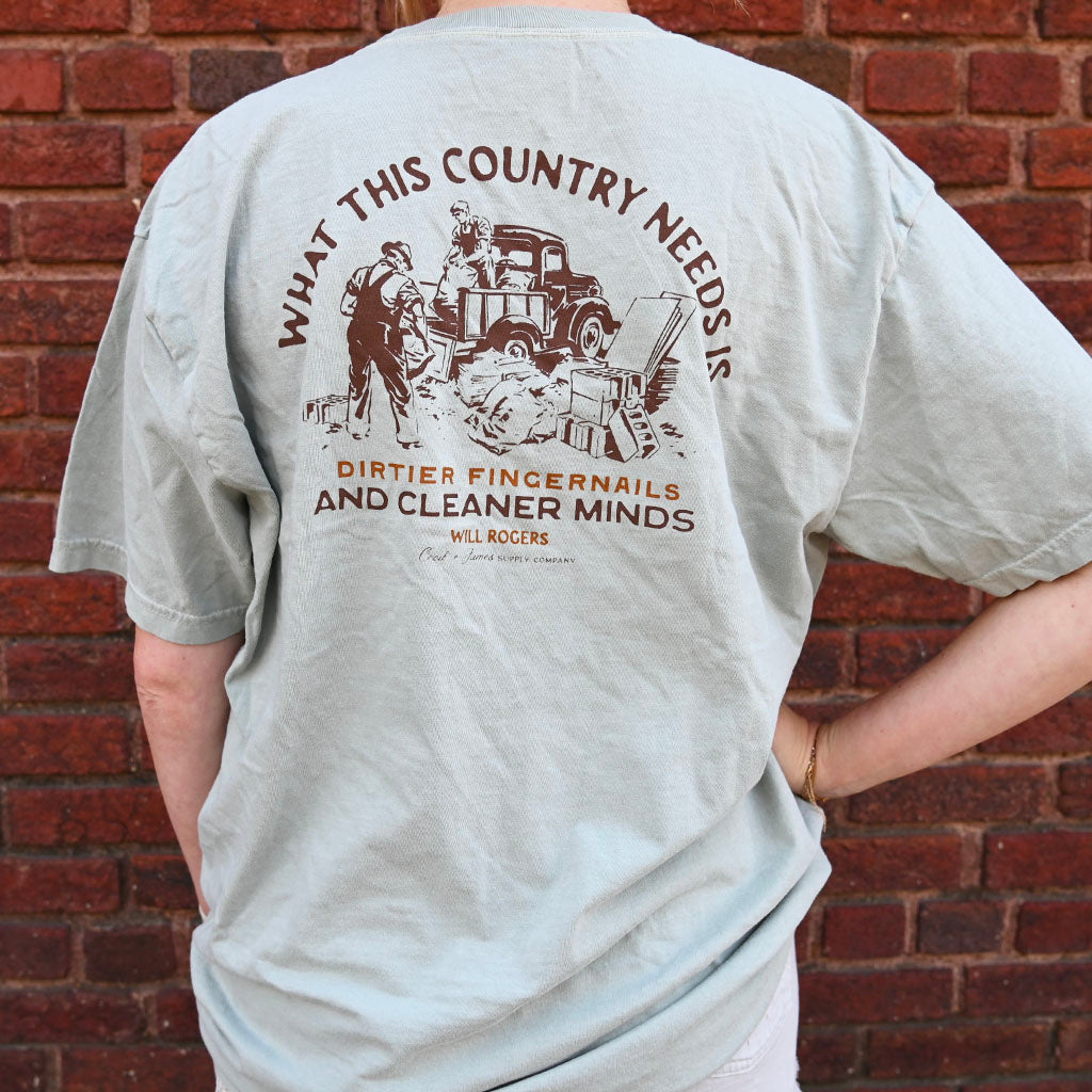 Elevate your mindset with our Cleaner Minds Tee. As Will Rogers once said, "What the country needs is dirtier fingernails and cleaner minds." Embrace the call to action and inspire change with this powerful quote. Let our tee remind you to take action and keep your mind clean.