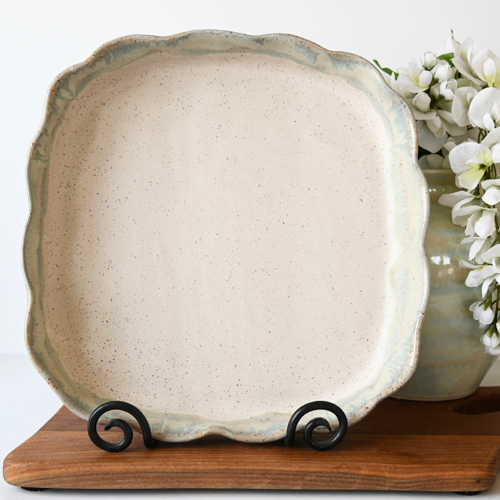 Each unique piece of Etta B Pottery is handcrafted and meticulously hand painted. The beautiful glazes provide a color palate sure to coordinate with any décor. The distressed and antique accents on these exquisite textures makes each piece a treasure. Though similar, no two pieces are just alike.