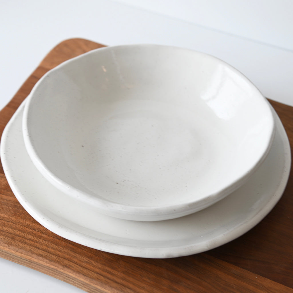 This Eyelet White glazed dinner bowl from Etta B is a beautiful and elegant addition to any table setting. The bowl is made of high-quality ceramic and is hand-painted with a delicate design. The bowl measures 9 inches in diameter and is 1 inch deep, making it perfect for serving soups, stews, or pasta. The bowl is also microwave and dishwasher safe, making it easy to care for.