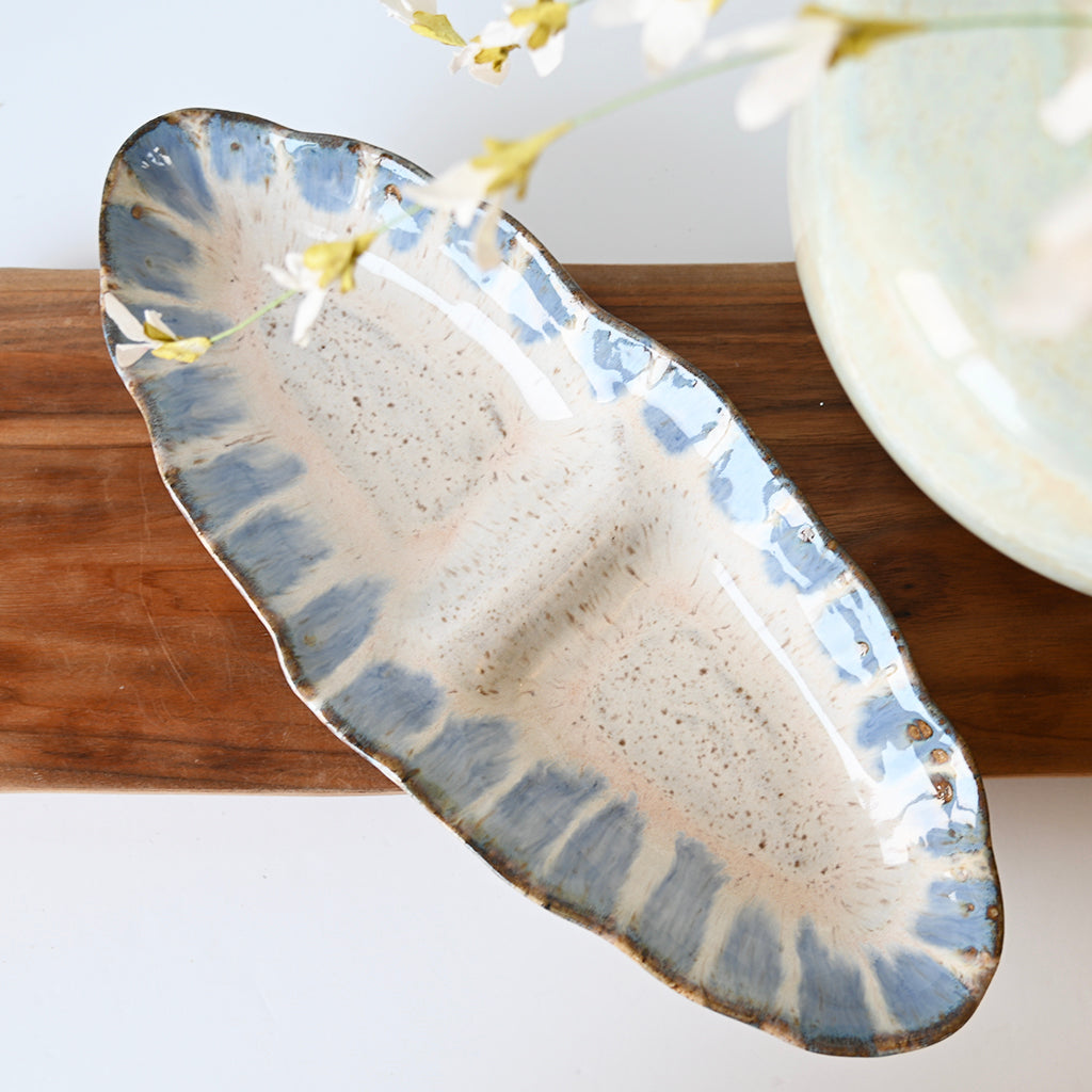 Elevate your entertaining with our Divided Tray in Blue Willow! With a divided dip bowl for easy food separation, this bowl is perfect for all your hosting needs. The neutral and blue colored glaze adds a touch of whimsy to any table setting. Plus, it's dishwasher and oven safe for easy cleanup!