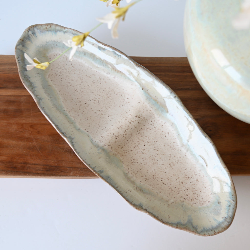 Elevate your entertaining with our Divided Tray in Hydrangea! With a divided dip bowl for easy food separation, this bowl is perfect for all your hosting needs. The light green and neutral colored glaze adds a touch of whimsy to any table setting. Plus, it's dishwasher and oven safe for easy cleanup!