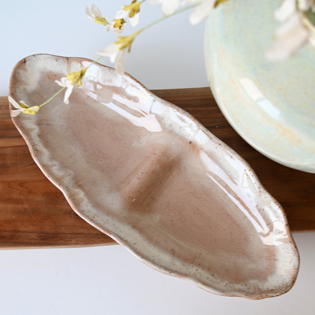 Elevate your entertaining with our Divided Tray in Primrose! With a divided dip bowl for easy food separation, this bowl is perfect for all your hosting needs. The blush colored glaze adds a touch of whimsy to any table setting. Plus, it's dishwasher and oven safe for easy cleanup!