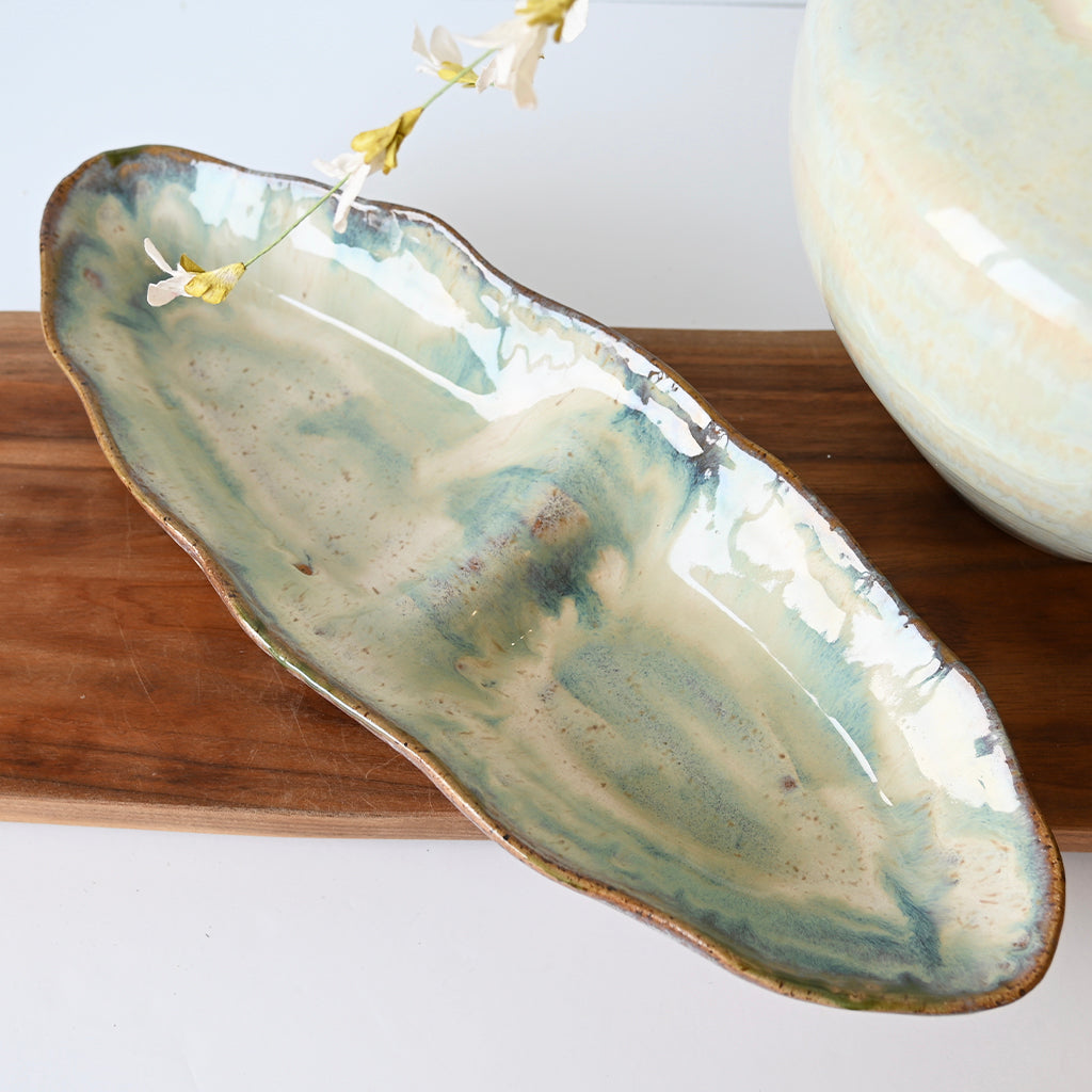 Elevate your entertaining with our Divided Tray in Seaside! With a divided dip bowl for easy food separation, this bowl is perfect for all your hosting needs. The blue/green colored glaze adds a touch of whimsy to any table setting. Plus, it's dishwasher and oven safe for easy cleanup!