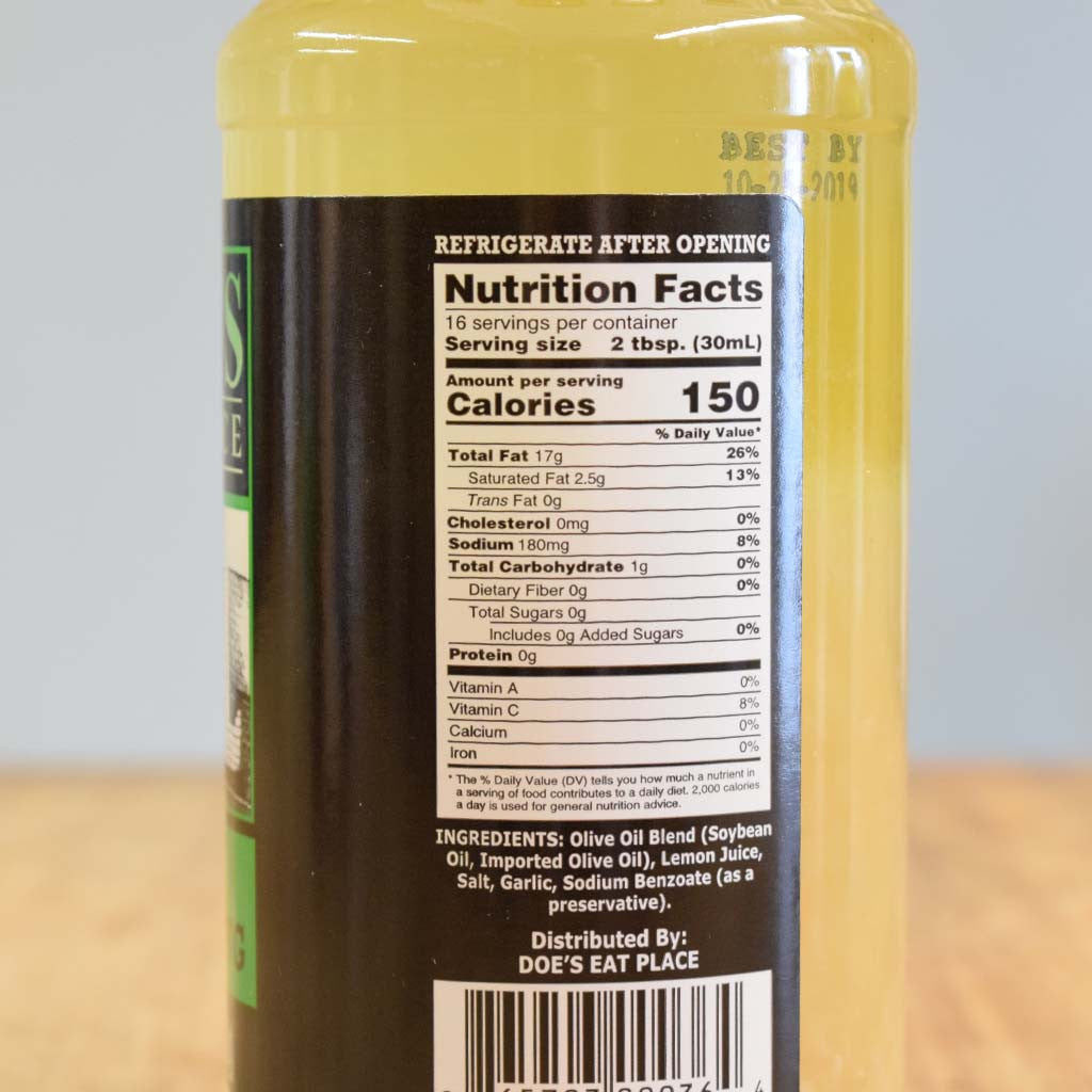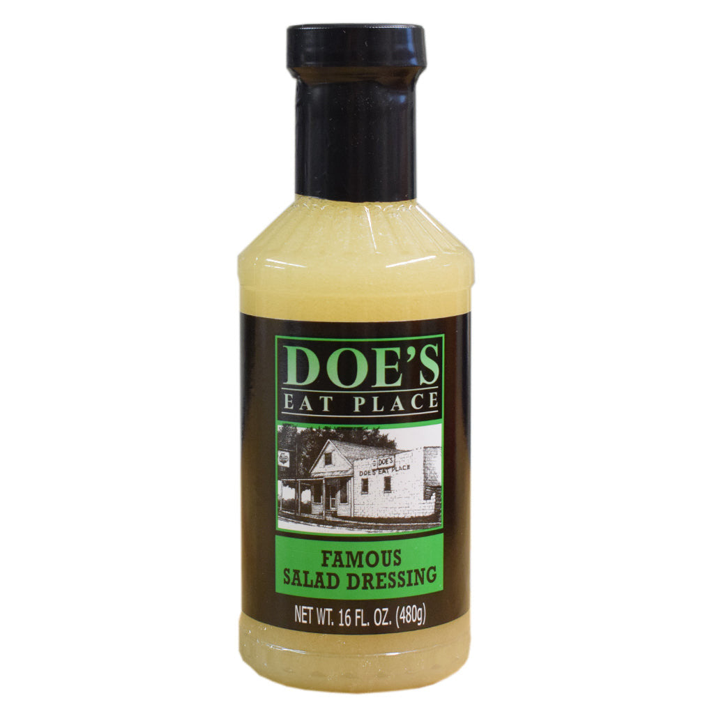 Who doesn't love a delicious salad dressing? This 16oz bottle contains the perfect blend of olive oil, lemon juice, and garlic to get that authentic Doe's experience in the comfort of your own home. Packaged in a 16oz. bottle.