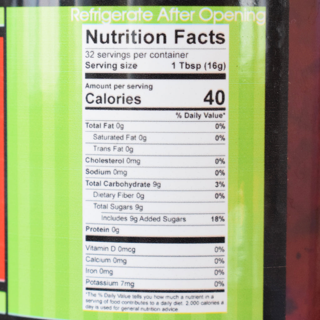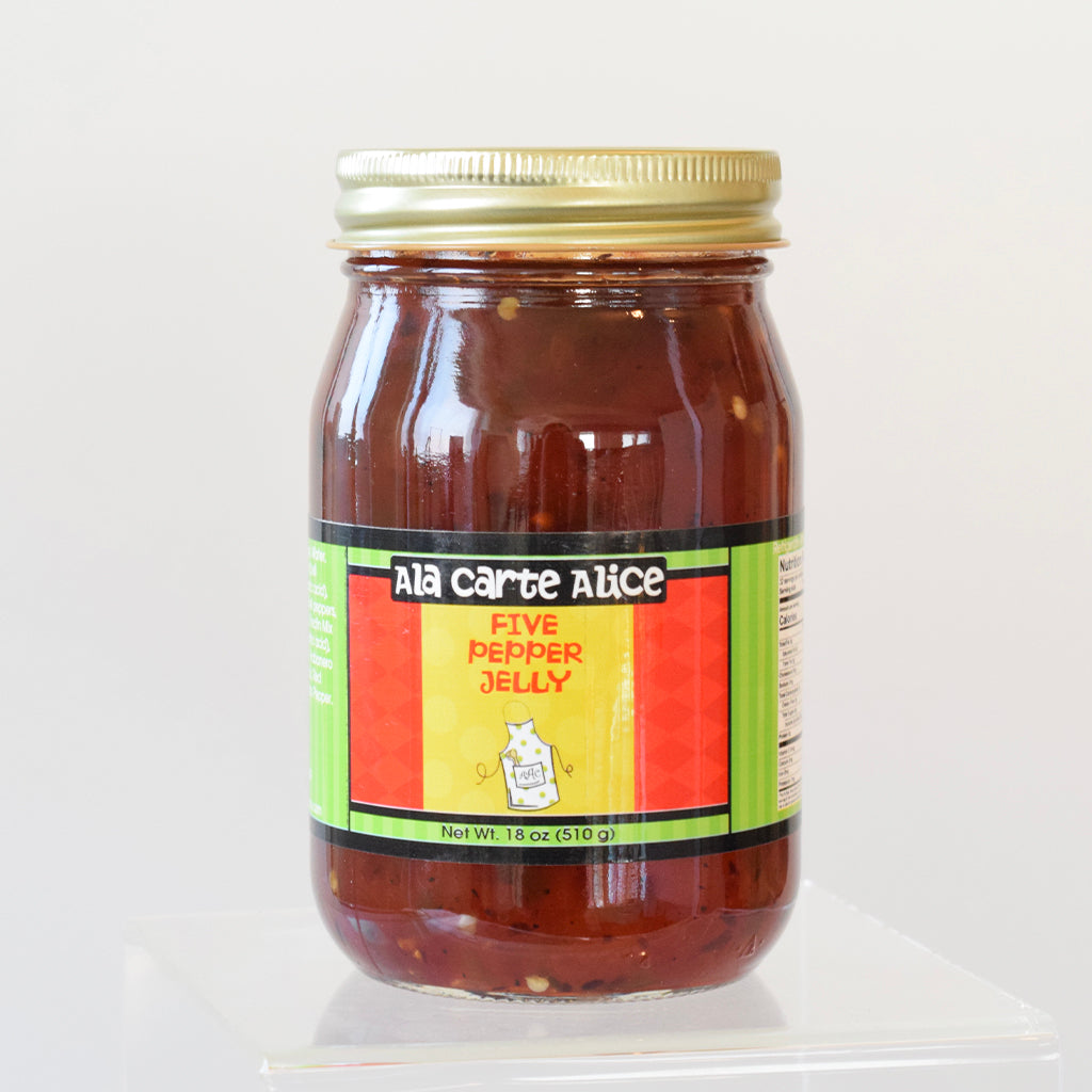 Ingredients: Sugar, Water, Green Bell Pepper, Red Bell Pepper, Pectin Mix, Jalapeno Pepper, Citric Acid, Red Pepper Flakes, Black Pepper.