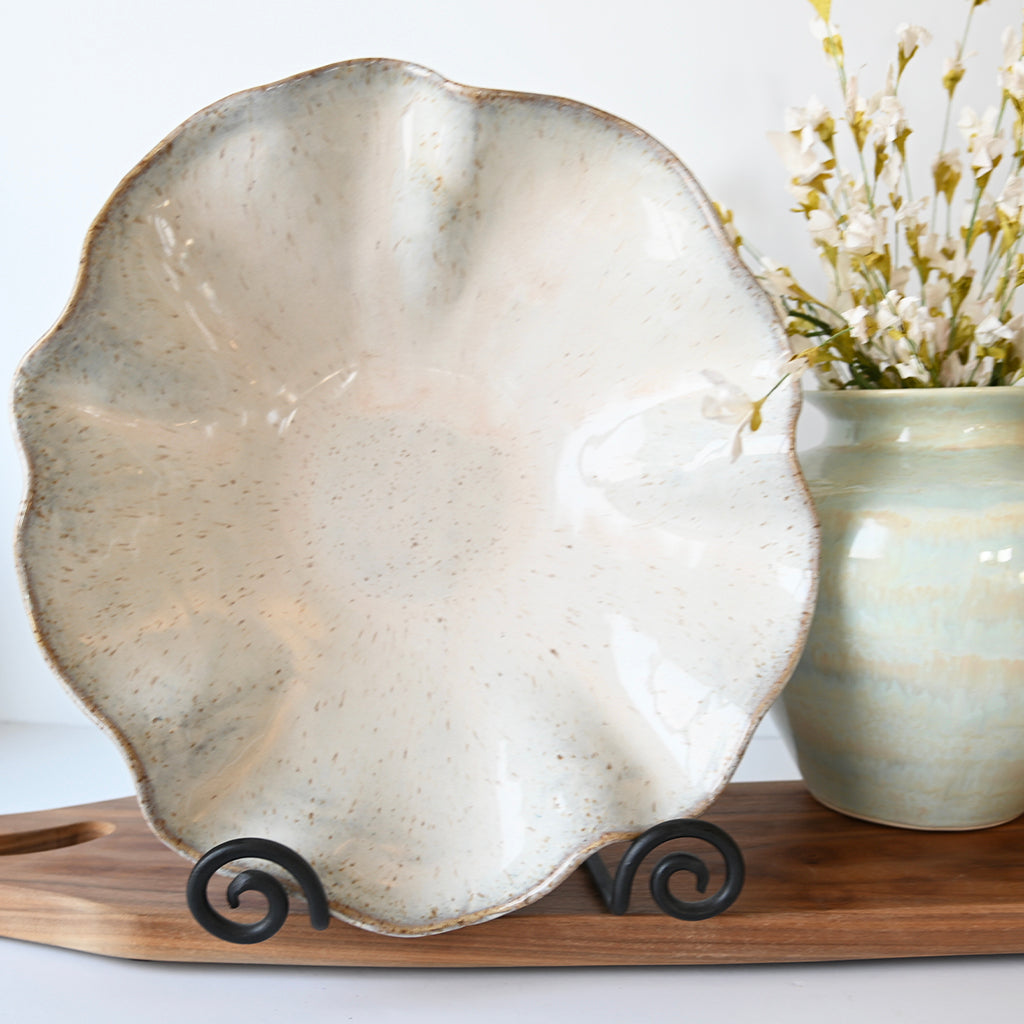 Each unique piece of Etta B Pottery is handcrafted and meticulously hand painted. The beautiful glazes provide a color palate sure to coordinate with any décor. The distressed and antique accents on these exquisite textures makes each piece a treasure. Though similar, no two pieces are just alike.