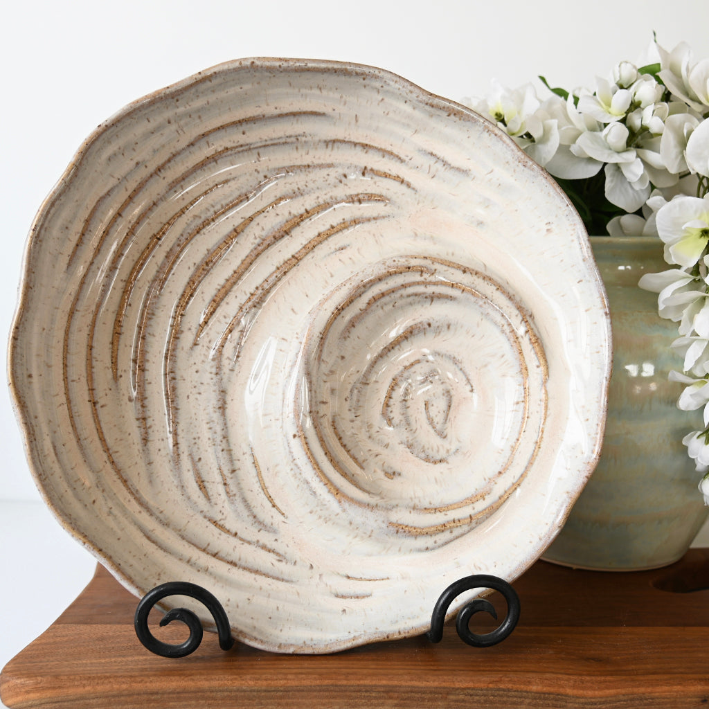 Each unique piece of Etta B Pottery is handcrafted and meticulously hand painted. The beautiful glazes provide a color palate sure to coordinate with any décor. The distressed and antique accents on these exquisite textures makes each piece a treasure. Though similar, no two pieces are just alike.